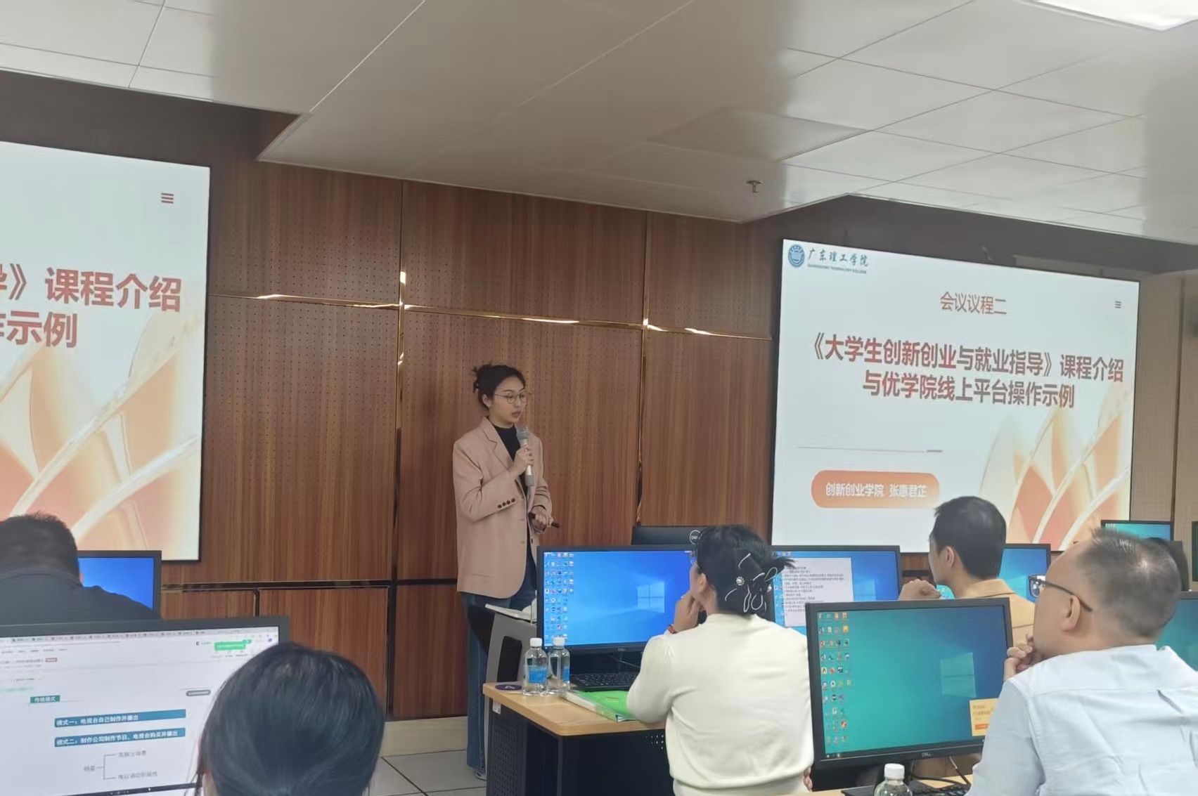 会议议程二,yl8cc永利线路检测中心张惠君芷老师对本学期的《大学生创新创业与就业指导》课程进行了详细介绍,并现场演示了优学院线上平台的操作方法。张惠君芷教师就课程的考核项目和成绩评定方法进行了详细讲解,帮助教师们更好地把握教学重点和难点。