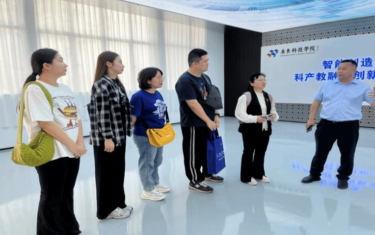 调研期间,梁慧仪副院长一行首先参观了广东科技学院智能制造科教融合创新中心,详细了解了中心建设历程、功能定位以及运行机制,并参观了历年获奖作品和相关仪器设备。广东科技学院在智能制造领域取得的丰硕成果,尤其是在科技创新与产业融合方面的实践经验,给调研团队留下了深刻印象。