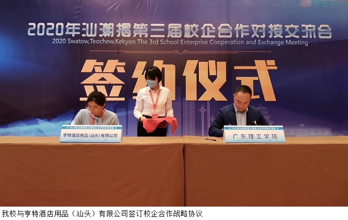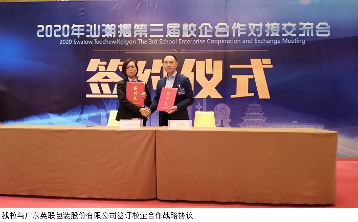 会上,我校与广东英联包装股份有限公司、亨特酒店用品(汕头)有限公司签订校企合作战略协议。随后,我校参会代表积极同与会的多家企业进行沟通,详细了解参会企业的用人需求,并向参会企业详细介绍了我校办学情况、专业设置和校企合作模式等内容,吸引了众多企业前来咨询,参会代表与部分企业就学校人才培养模式、企业用人需求、校企合作意向等问题进行了深入探讨。同时,也邀请了与我校专业匹配度高、竞争力强、有意向的企业参加我校的校园招聘会。